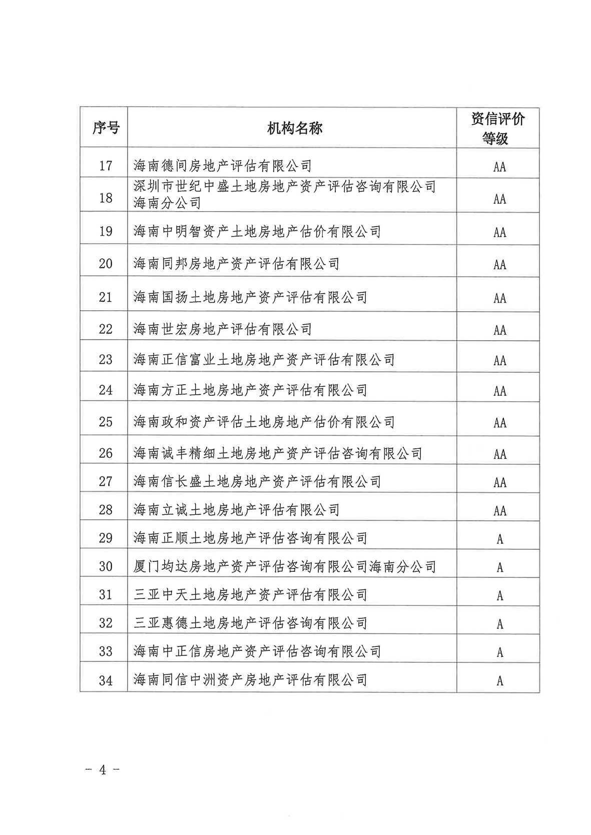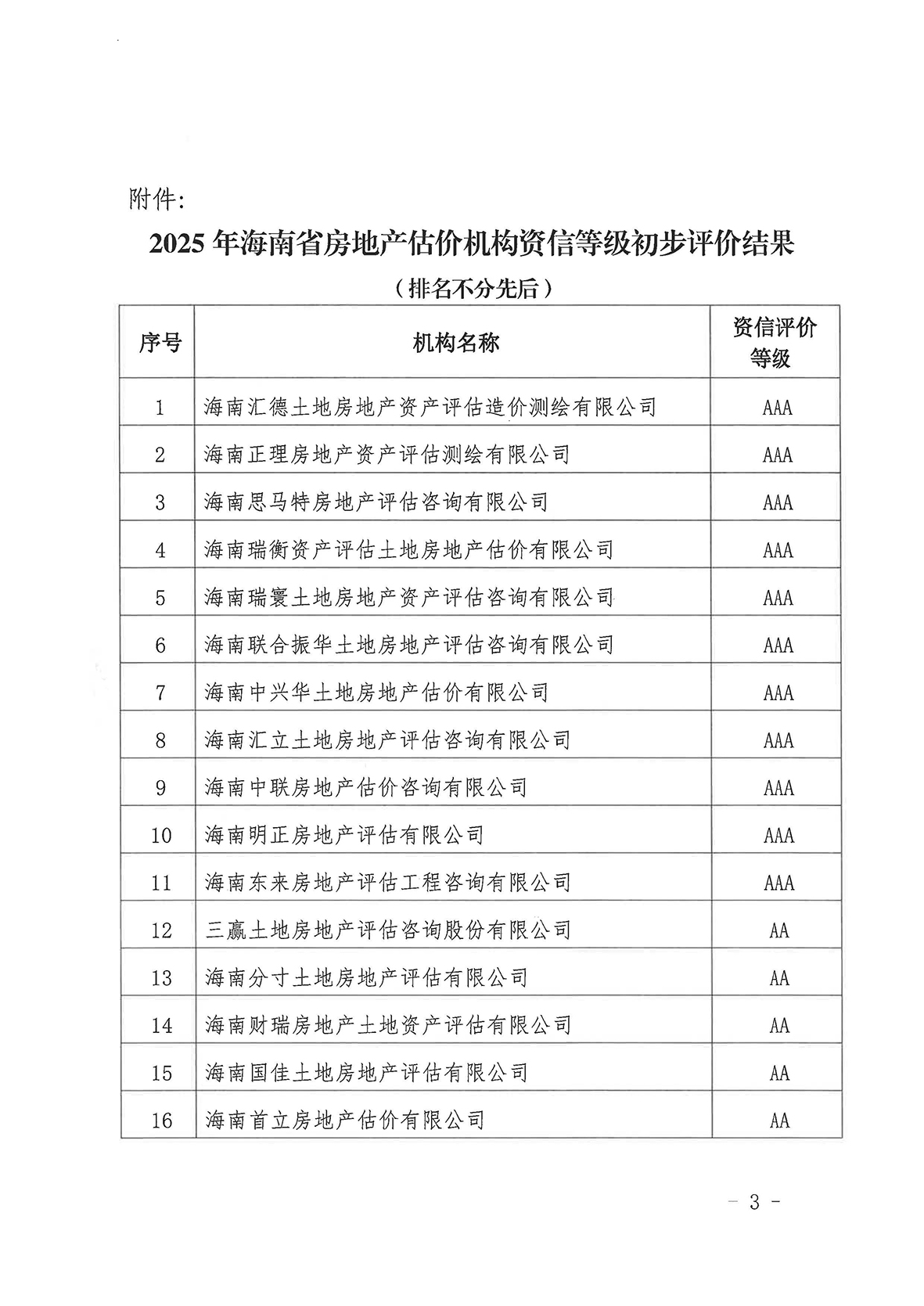 关于印发2025年海南省房地产估价机构资信评价结果的通知